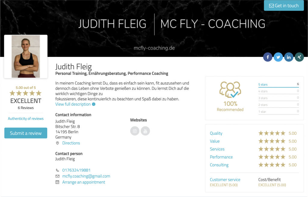 Es ist mir wichtig, dass Du mir vertrauen kannst. Nur mit gegenseitiger Ehrlichkeit und Offenheit können wir Deine Ziele erreichen. Du hast meine volle Aufmerksamkeit und ich bin 24/7 für Dich erreichbar.
